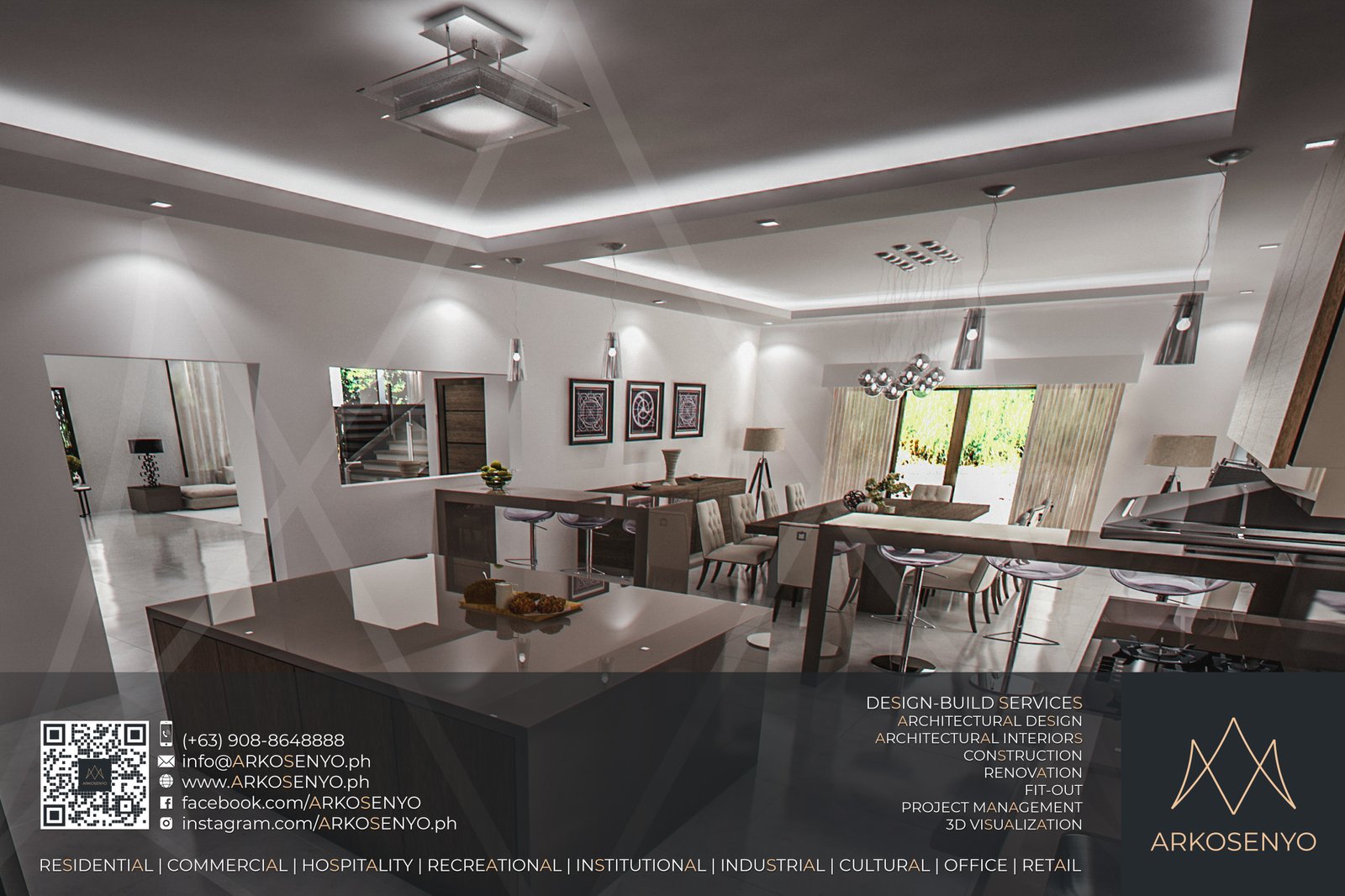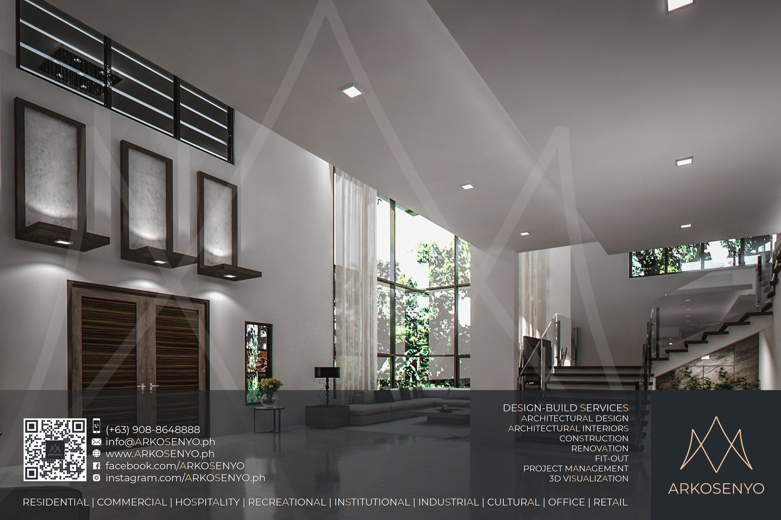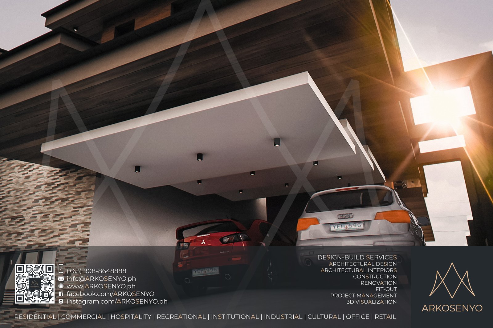 This captivating residential design project envisions a two-storey haven nestled amidst the breathtaking landscapes of Alegria Hills, Cagayan de Oro. Spanning a generous 811 sq.m. lot, the proposed residence boasts an impressive total floor area of 836 sq.m., meticulously crafted to embody the essence of Asian Modern design. Soaring high floor-to-ceiling corner windows grace the exterior, seamlessly integrating the stunning views of the surrounding hills into the living space. The design thoughtfully embraces the uphill slope of the property, incorporating split-level flooring to create distinct living zones while optimizing the use of space. Upon entering, a dramatic 2-floor ceiling height within the living area creates a sense of grandeur and openness. Warm wood accents complement the contemporary aesthetic, while the interior color scheme blends elegant white with the rich tones of dark wenge, creating a sophisticated and inviting atmosphere.