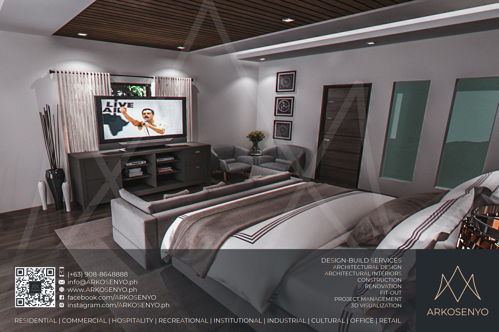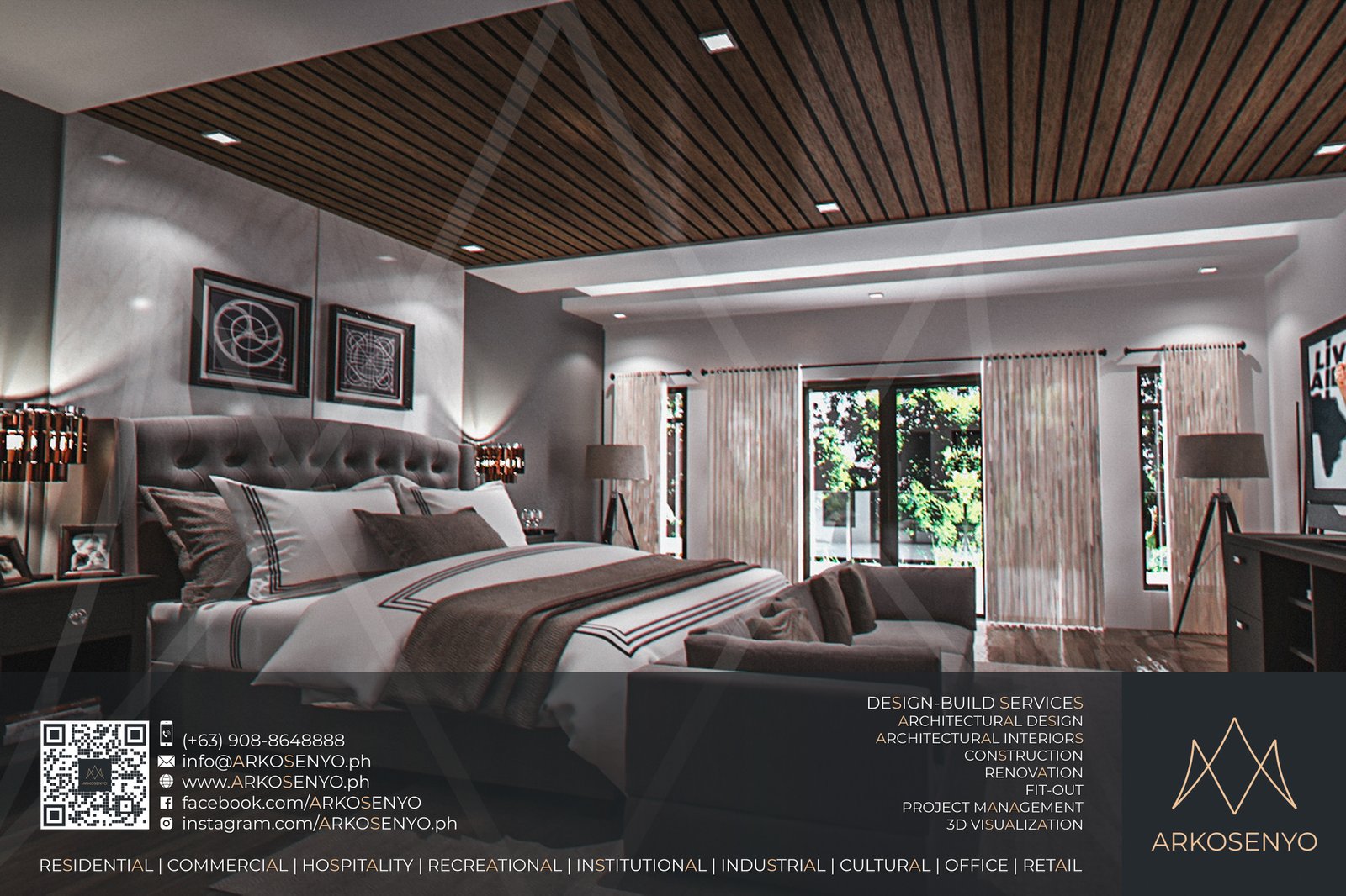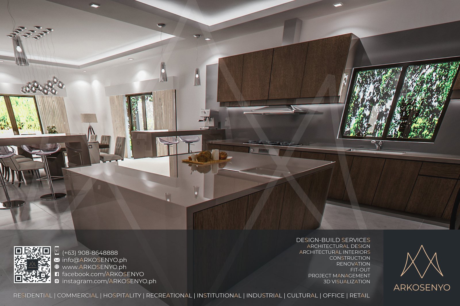 This captivating residential design project envisions a two-storey haven nestled amidst the breathtaking landscapes of Alegria Hills, Cagayan de Oro. Spanning a generous 811 sq.m. lot, the proposed residence boasts an impressive total floor area of 836 sq.m., meticulously crafted to embody the essence of Asian Modern design. Soaring high floor-to-ceiling corner windows grace the exterior, seamlessly integrating the stunning views of the surrounding hills into the living space. The design thoughtfully embraces the uphill slope of the property, incorporating split-level flooring to create distinct living zones while optimizing the use of space. Upon entering, a dramatic 2-floor ceiling height within the living area creates a sense of grandeur and openness. Warm wood accents complement the contemporary aesthetic, while the interior color scheme blends elegant white with the rich tones of dark wenge, creating a sophisticated and inviting atmosphere.