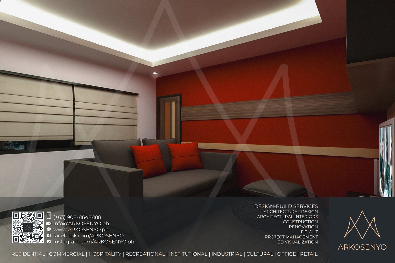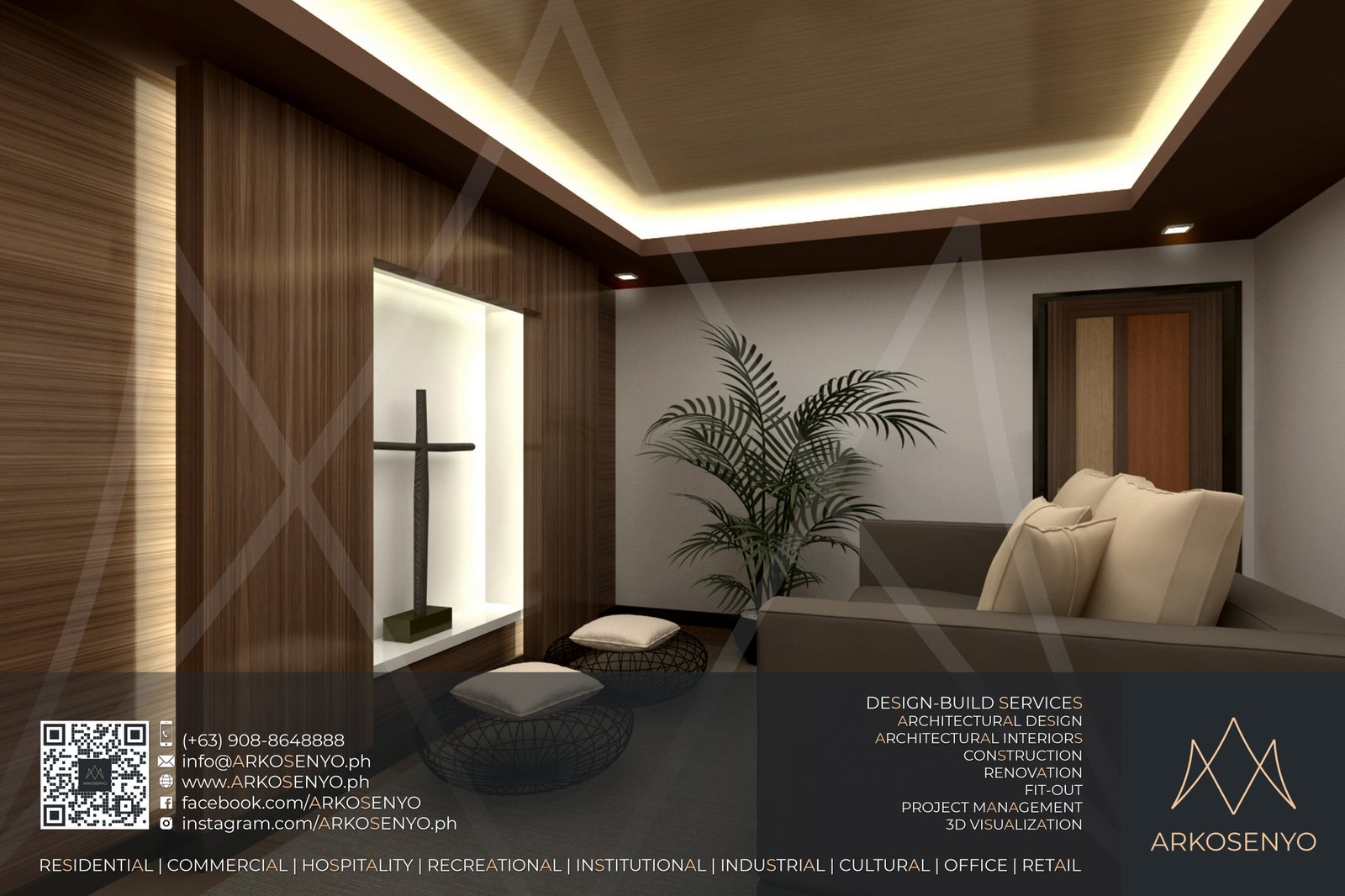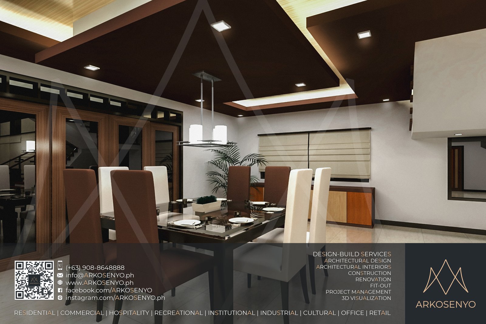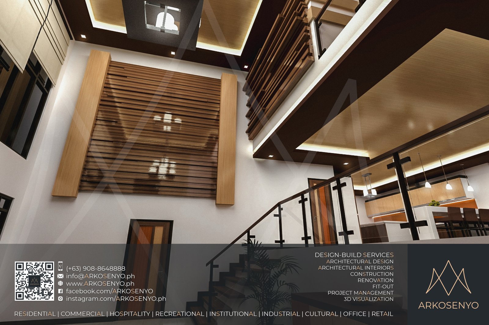 This residential structure is expected to take shape in Ayala Westgrove Heights, Silang, Cavite, with a comely Modern Zen architectural design. The dominance of horizontal lines and wooden planks evoke simplicity, serenity, and solidity while the entire composition exudes the aura of grace and elegance of a Japanese home prototype. The interior designs also bear the architectural theme, but have experimental and playful details to add drama and excitement to the space. To be built on a lot with an area of 384 square meters, this two-storey house with an attic will cover a total floor area of 515 square meters. ARKOSENYO submitted the Detailed Architectural and Engineering Design Services (DAEDS) contract documents in October 2013.