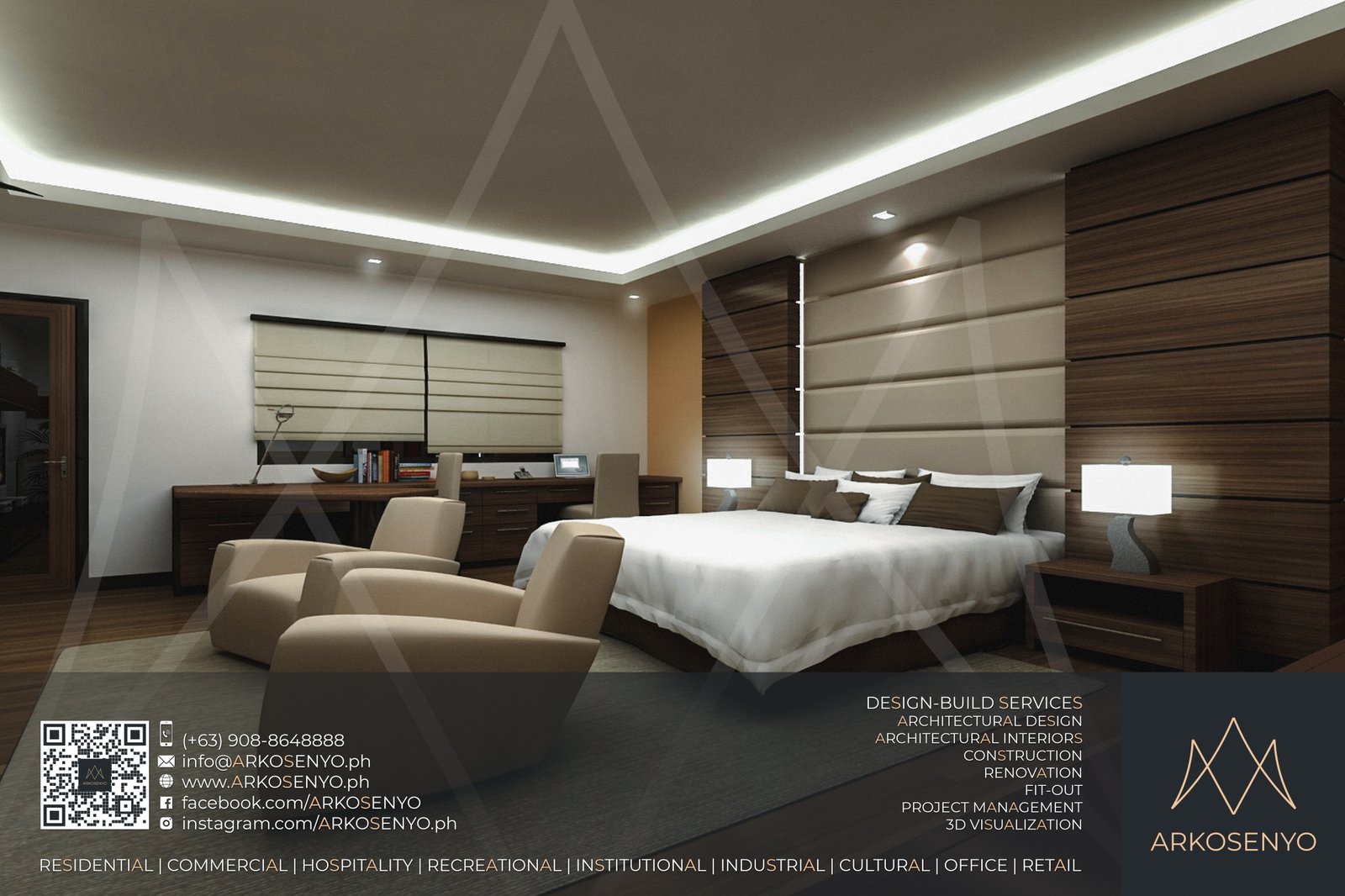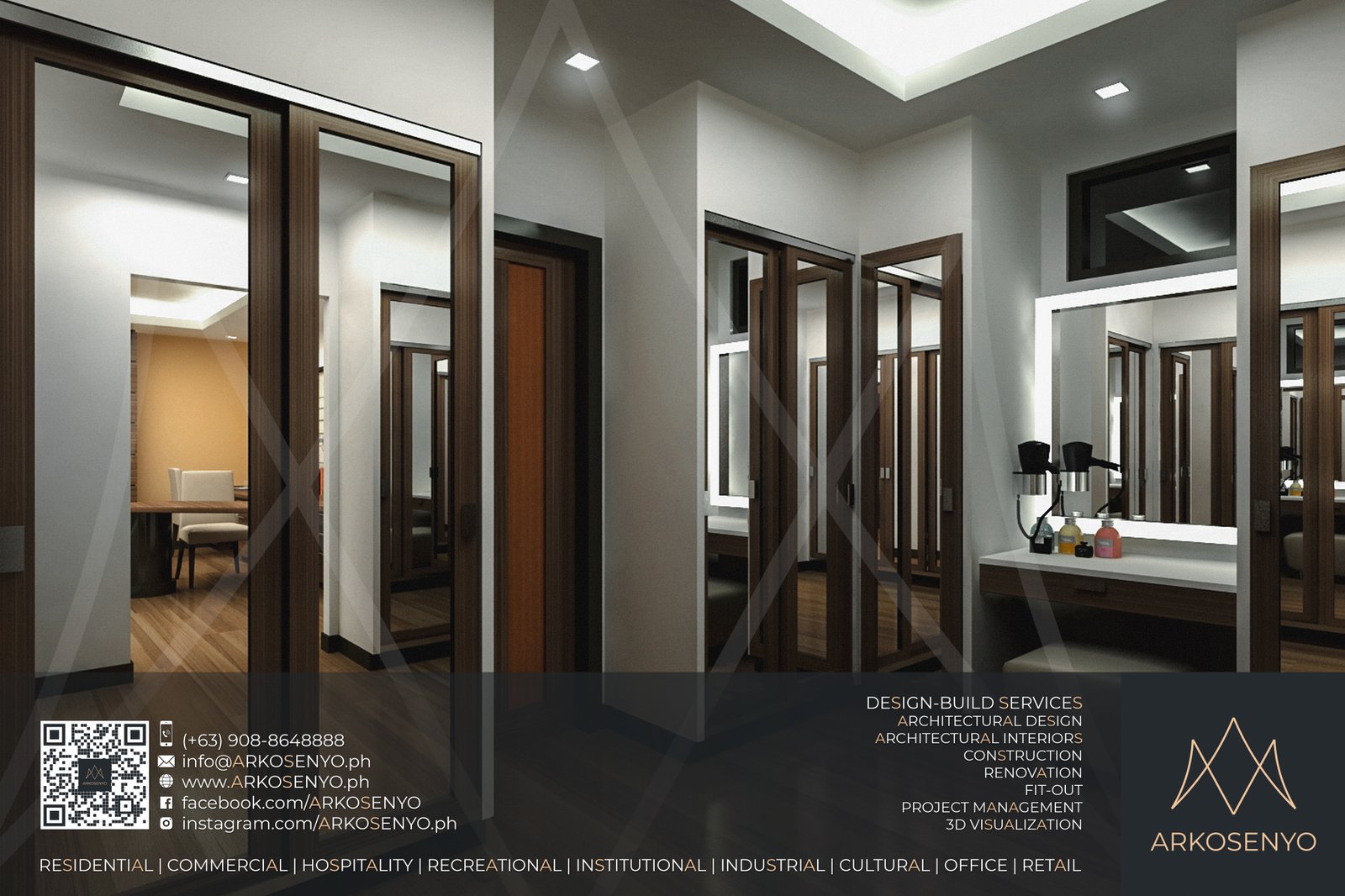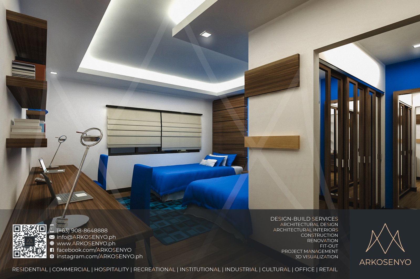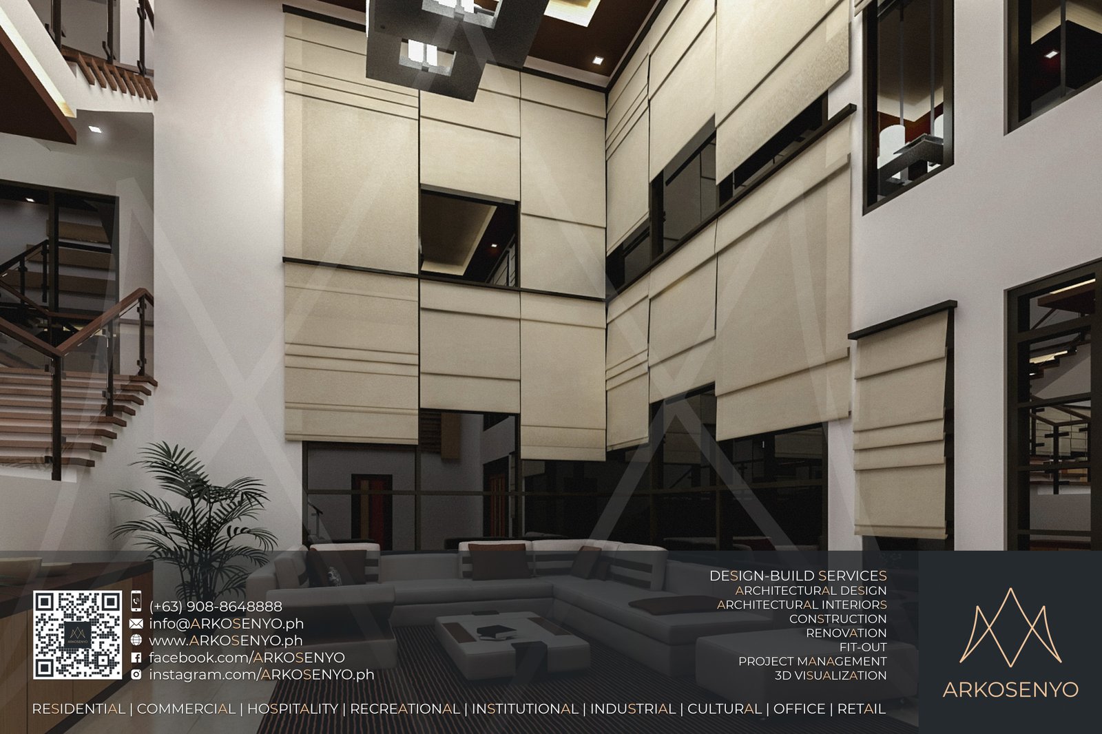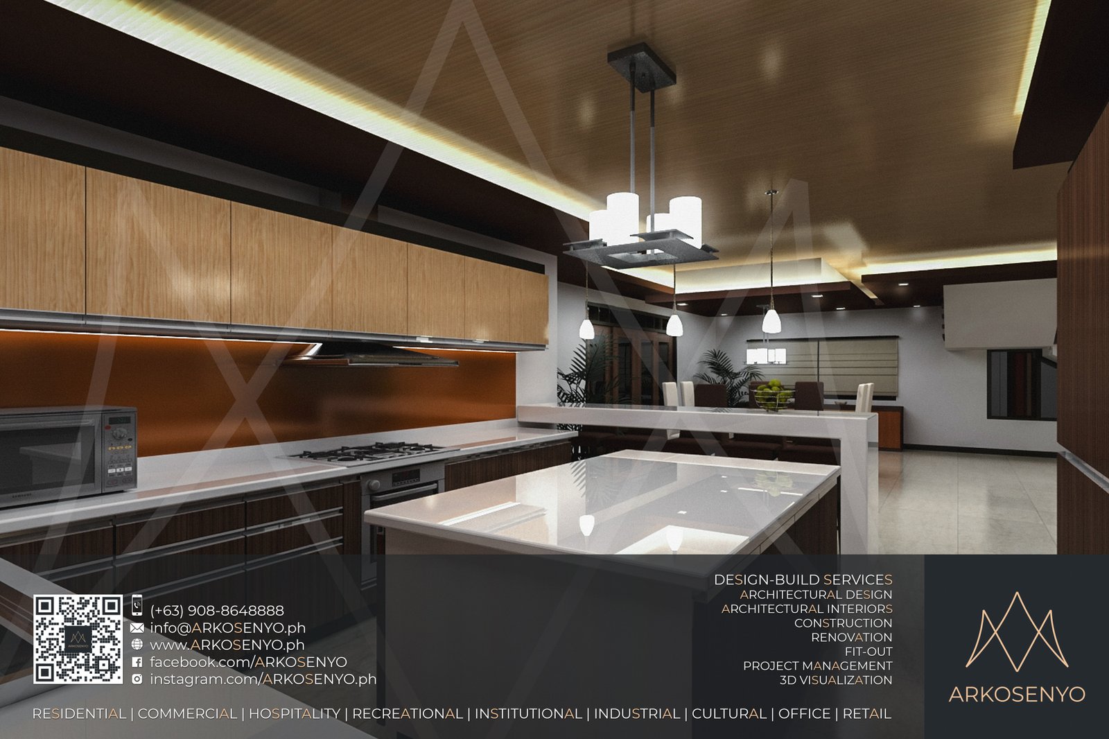 This residential structure is expected to take shape in Ayala Westgrove Heights, Silang, Cavite, with a comely Modern Zen architectural design. The dominance of horizontal lines and wooden planks evoke simplicity, serenity, and solidity while the entire composition exudes the aura of grace and elegance of a Japanese home prototype. The interior designs also bear the architectural theme, but have experimental and playful details to add drama and excitement to the space. To be built on a lot with an area of 384 square meters, this two-storey house with an attic will cover a total floor area of 515 square meters. ARKOSENYO submitted the Detailed Architectural and Engineering Design Services (DAEDS) contract documents in October 2013.