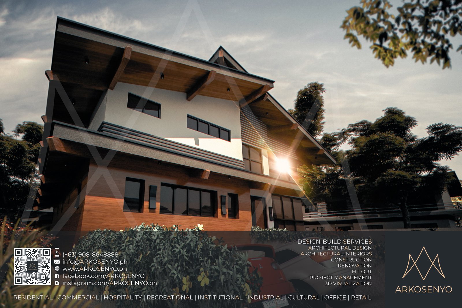 This project showcases a proposed architectural design and 3D visualization for a two-storey residence with a basement in Riomonte Nuvali, Calamba, Laguna. Sitting on a spacious 496 square meter lot, the residence boasts a total floor area of 550 square meters, thoughtfully designed to maximize space and functionality. Finalized in December 2018, the design incorporates an Asian Modern aesthetic, featuring wood accents that add warmth and character. A unique roof design adds a touch of architectural interest, while high floor-to-ceiling corner windows bathe the interior with natural light and create a seamless connection with the surrounding environment. This project exemplifies a contemporary approach to residential design, seamlessly blending modern sensibilities with a touch of Asian influence, perfect for those seeking a stylish and comfortable living space in the heart of Nuvali.